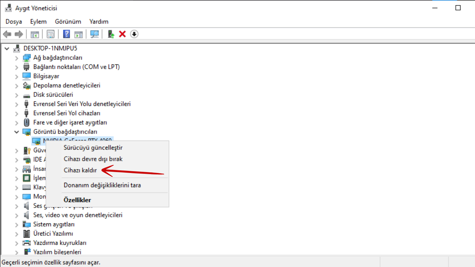 1. Aygıt Yöneticisi Üzerinden Kaldırma