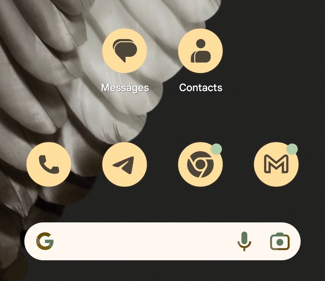 Önceki sürümden farklı olarak, yeni Mesajlar ve Kişiler uygulaması simgeleri gölge kullanmıyor ve mavi yerine beyaz bir arka plana sahip. Google Chat uygulamasıyla yan yana, üç uygulamanın da aynı aileden olduğunu ve benzer bir tasarım dilini takip ettiğini görebiliyoruz. Dinamik tema desteği var. Bu nedenle yeni simgeler ana ekranınızdaki diğer simgelerle mükemmel bir şekilde uyum sağlar.