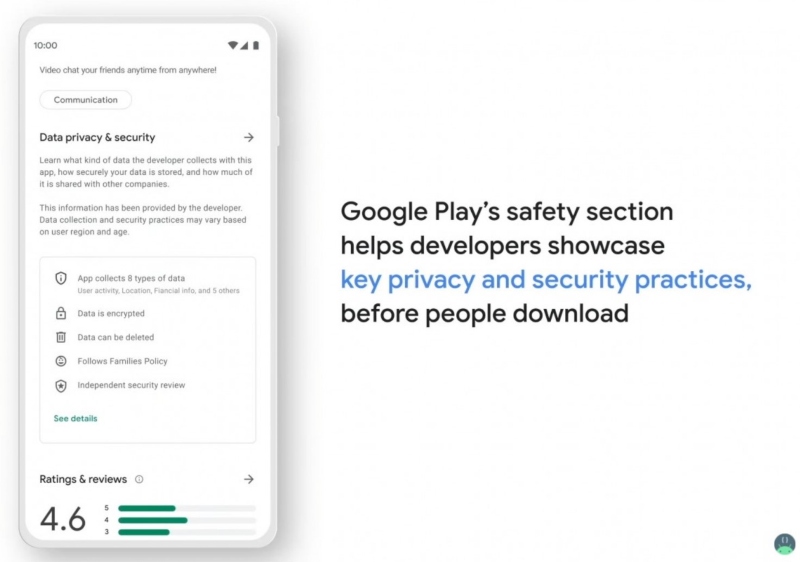 Uygulama geliştiricileri, kullanıcıların uygulama hakkında bilgi sahibi olmasını sağlayacak bir “Veri Güvenliği” sekmesi hazırlıyor. Yeni tasarımda Program İzinleri bölümü Veri Güvenliği sekmesi ile değiştirilmiştir. Bazı kullanıcılar, uygulamanın izinler bölümünü kaldırma kararı konusunda Google’a tepki gösterdi.