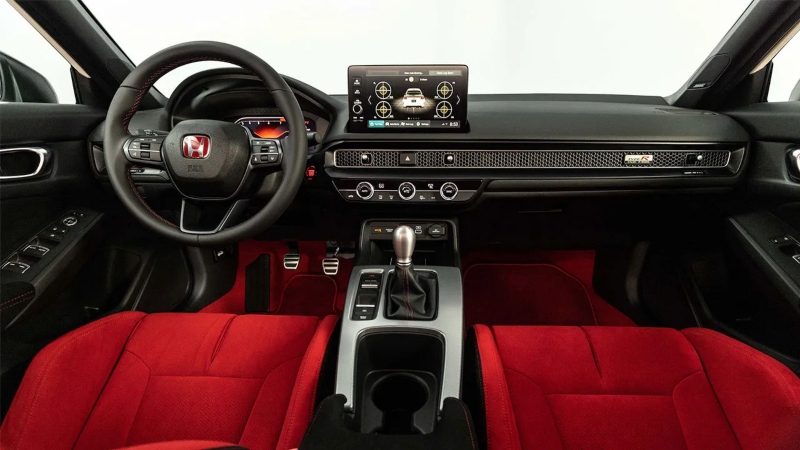 Tüm bu agresif detaylara rağmen otomobilin selefinden daha sakin ve olgun bir tasarıma sahip olduğunu söyleyebiliriz. Yeni model Rallye Red, Racing Pearl Blue, Crystal Pearl Black, Sonic Pearl Grey ve Championship White Sportif detaylar yeni modelin iç kısmında da devam ediyor. İlk göze çarpan şey kırmızı spor koltuklar ve halılar. Ön panelde yer alan Type R logosu, otomobilin karakterini yansıtan kırmızı renk detaylarına ek olarak sürücüye belirli bir modelde olduğunu hatırlatıyor.