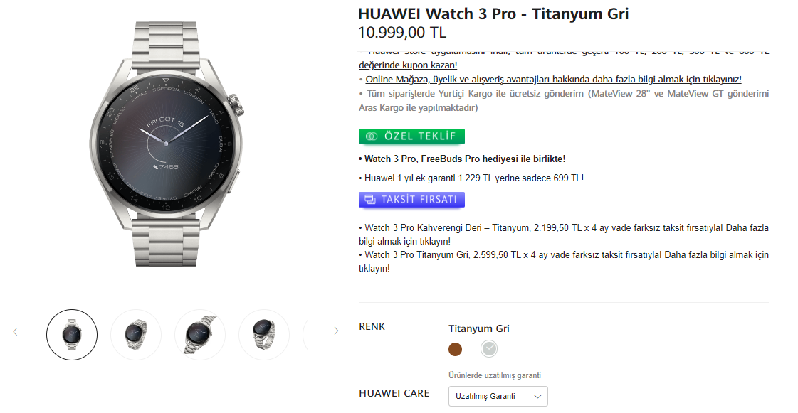 2 GB RAM, 16 GB depolama alanıyla kutudan çıkacak olan cihaz, tam şarjla 4 günlük bir kullanım sunuyor. Cihazın Çin’deki satış fiyatı ise 430 dolar. Huawei’nin Türkiye sayfasında ise şu an için satışlar açık olmasa da cihaz 10.999,00 TL etiketi ile listelenmiş durumda.