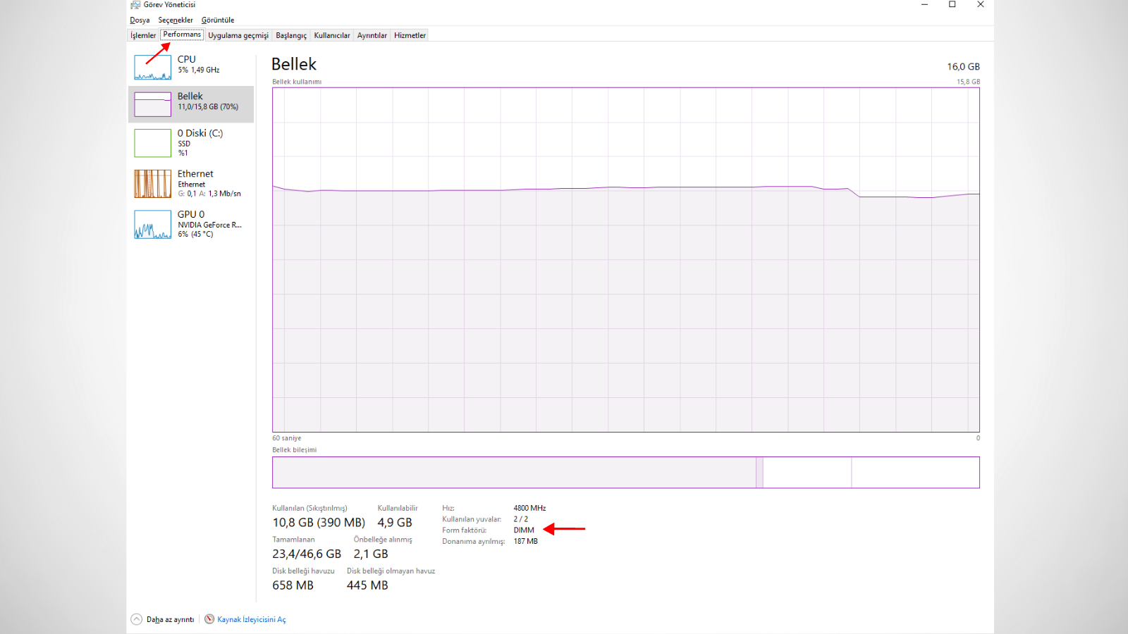 - Üst sekmelerden “Performans” bölümüne geçin.