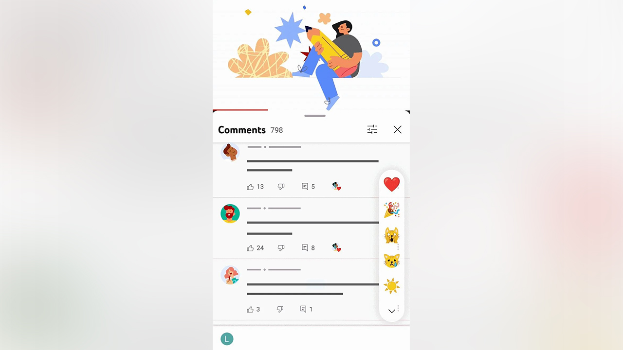 YouTube tarafından yapılan yeni testlerde, kullanıcılar kalp, gülen surat, şaşkınlık ve kahkaha gibi emojiler ile videoyu değerlendirebilecek. Zamanlanmış tepkiler olarak da adlandırılabilecek bu özellikler önümüzdeki günlerde ana sürümlere eklenecek.