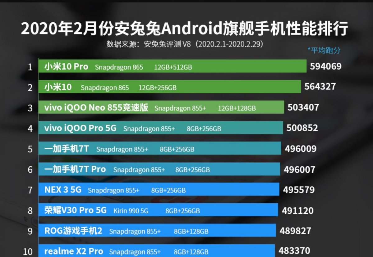 Akıllı cep telefonları karşılaştırma platformu olan AnTuTu, Mart 2020 yılının en iyi performansını gösteren Android akıllı cep telefonlarını açıkladı. Mart ayı içerisinde ilk 10 sıraya Snapdragon 865 işlemci sistemine sahip olan akıllı cep telefonlar aldı. Şöyle ki telefon karşılaştırma platformu AnTuTu, Mart ayı içerisinde en iyi performans gösteren 10 amiral gemisi telefon bilgisini paylaştı. Sıralama 1 Mart'tan itibaren 31 Mart tarihleri arasında AnTuTu Benchmark V8'deki en yüksek puan ortalamalı telefonların yer aldığı gösterildi. Akıllı cep telefonların yer aldığı listedeki skorlar, 1000'den fazla akıllı cihazdan alınan puanların ortalamasıyla hesaplanıyor.