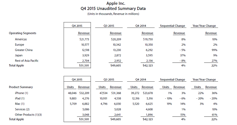 Apple, 2015 4. Çeyrek Finansal Sonuçlarını Açıkladı!