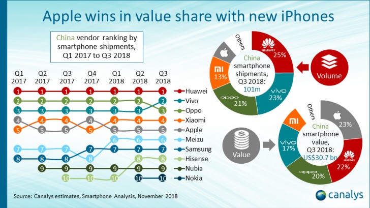 Raporlama şirketi verilerine bakıldığında, amiral gemilerinin 400-600 dolar arasında olduğu görülüyor. Fakat bu fiyat eşiğinin, 5G, katlanabilir telefonlar gibi yeni teknolojilerle birlikte yukarı çıkması bekleniyor. Çin’in üçüncü çeyreğinin en popüler telefonu Oppo A5 oldu. İlk 10 listesi, Vivo ve Oppo tarafından oluşturulmuş oldu. Çin akıllı telefon pazarında rağbet gören Vivo, her dört satışından 3’ünü, Çin’de yapıyor.
