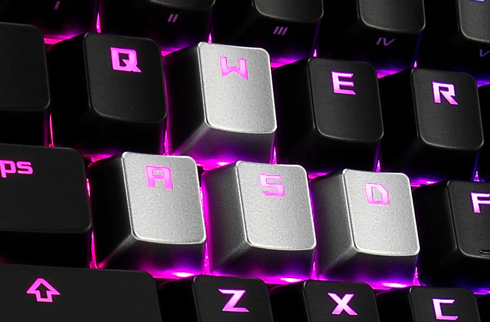 Oyuncuların görünüme de önem verdiğini bilen Asus, dikkat çeken WASD tuşlarını gümüş renkli tuş başlıklarıyla da süsledi. Tuş başlıklarını temizlemek ve değiştirmek için çıkarmaya yarayan araç da ürünün paketin de bulunuyor, bu araçla kullanıcılar tuşları da kişiselleştirebiliyor.