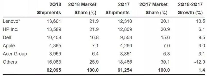 Bilgisayar satışları, akıllı telefonların içerisinde her şeyin girmesiyle beraber son 6 yıldır oldukça kötü gidiyordu. 2012 yılından itibaren herhangi bir artışın gözlemlenemediği bilgisayar satışlarında bu yıl beklenen değişiklik oldu. Market araştırmacısı Gartner tarafından yayınlanan raporda, ilk çeyreğe bakıldığında bilgisayar satışlarının global anlamda %1.4 oranında arttığı görülüyor. Toplamda dünya çapında 62 milyon satışın gerçekleştiği raporda, bayrağı elinde tutan marka ise Lenovo. Onu takip eden isim ise HP oluyor ve üçüncü sırada da Dell yer alıyor.