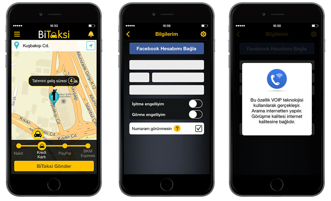 Bugün gelen 'numara gizleme özelliği' güncellemesi sayesinde kullanıcılar numaralarını gizleyerek taksi şoförleri ile iletişime geçebilecekler. BiTaksi uygulamasından profilinize girerek 'Bilgilerim' ekranına yeni eklenen 'numaram görünmesin' sekmesini aktifleştirip numaranızı gizlenmiş bir halde VOIP teknolojisini kullanarak taksi şoförleriyle internet üzerinden görüşme yapılabilecek.