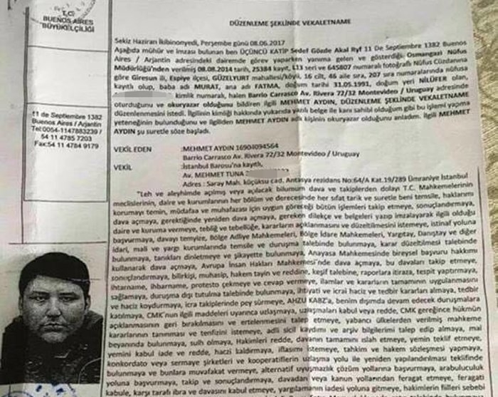 Sözcünün ortaya attığı belgeye bakılırsa Çiftlik Bank'ın kurucusu olan Mehmet Aydın, 8 Haziran 2017 tarihinde Buenos Aires'teki Türkiye'nin Arjantin Büyükelçiliği'ne gitti ve Avukat Mehmet Tuna adına vekaletname çıkardı. Aydın, ev adresi olarak ise Barrio Carrasco Av. Rivera 72 / 32 Montevideo'yu gösterirdi. Carrasco yalnızca başkent Montevideo'nun değil, Uruguay'ın en lüks semtlerinden biri olarak biliniyor.