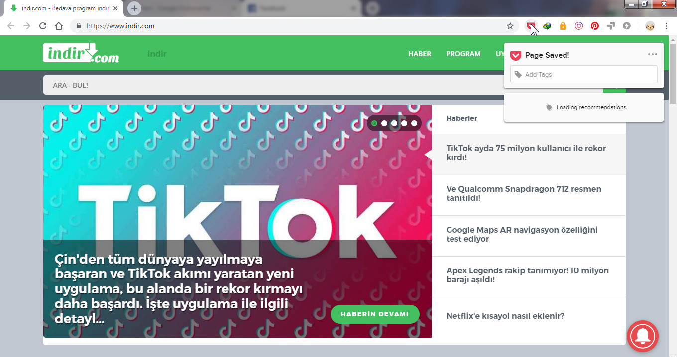 Pocket yeni tasarıma geçti İşte yenilikler!İçerikleri kaydetmeye başlamak için ise yapmanız gereken ilk işlem öncelikli olarak tarayıcı eklentisini kurmak. Pocket resmi web sayfasından indirebileceğiniz tarayıcı eklentisini kurduktan sonra ise içerikleri kaydetmeniz oldukça kolay olacak. İçerik kaydetmek istediğiniz zaman öncelikli olarak içeriği kaybedeceğiniz sayfayı açın ve daha sonrasında sağ üst tarafta bulunan Pocket simgesine tıklayın. Simgeye tıkladıktan sonra ilgili sayfa hesabınıza aktarılacak ve erişime açılacaktır.