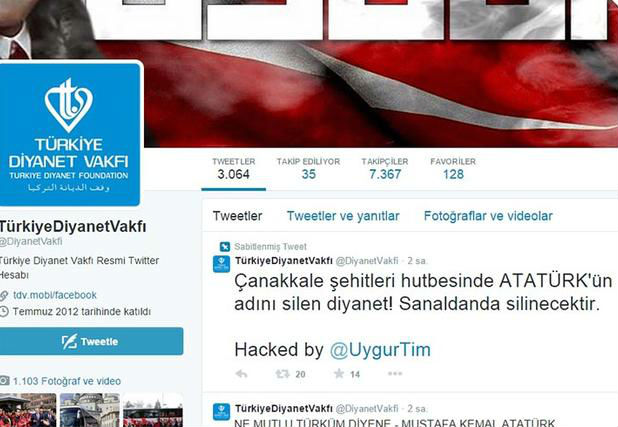 Türkiye Diyanet Vakfı'nın resmi Twitter hesabı kendisini 'Uygur Tim' olarak tanıtan kişi ya da kişiler tarafından hacklendi. Vakıf'tan yapılan açıklamada, hesaptan yapılan paylaşımların kurumla bir ilgisinin olmadığı vurgulandı.