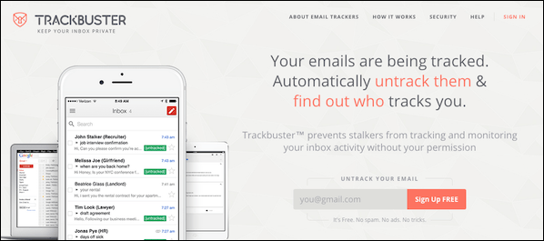 Trackbuster, mailde yer alan tüm izleyicileri kaldıran güçlü bir hizmettir. Üstelik uzantı ya da başka bir işlem yapılmasına gerek kalmadan bu hizmetten yararlanılabilmesi mümkündür. Bu İşlemlerin yapılması için öncelikle Trackbuster üzerinden bir Gmail hesabına erişim izni verilmesi gerekmektedir. Erişim izni verildikten sonra mail kutusuna gelen her bir mail mevcut araç tarafından hızlı bir şekilde analiz edilir ve izleyici olup olmadığı kullanıcılara özel bir etiket ile gösterilir. Tüm e-postaların yanında yer alacak etiket bölümünde, mailin izleyici içerip içermediği uygulama tarafından kullanıcılara gösterilir.