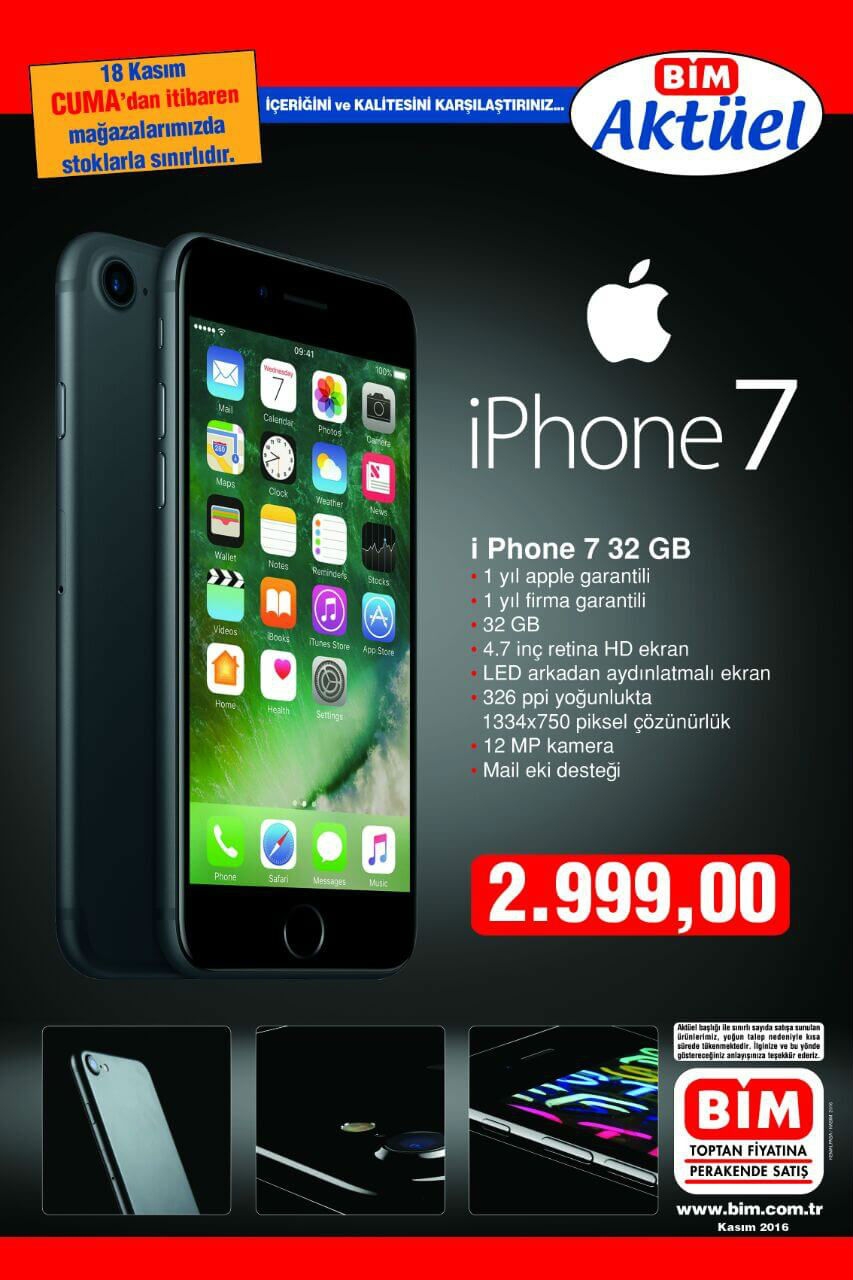 Teknoloji devi olarak adlandırılan Apple, her yaptığı çalışmayla kullanıcıları ve teknoloji üreticilerini peşinden sürüklüyor. Yapmış olduğu her çalışma çok konuşulan marka, öncelikle kullanıcılarına hızlı ve güvenli teknoloji sunmaya çalışıyor. Bu yüzden de üretimini yaptığı her cihaz ve her uygulama kullanıcılara sunulmadan önce gerekli olan testlerden geçiriliyor. Marka her yıl piyasaya sunduğu yeni ürünle idol olmayı başarıyor. Geçtiğimiz aylar içinde de iPhone modelli cihazın yeni sürümü olan iPhone 7 ve iPhone 7 Plus'ı iOS işletim sisteminin yeni sürümü olan iOS 10 ile piyasaya sundu. Dünya ülkelerinde hizmet verdiği tüm ülkede kullanıma sunulan cihazlar hemen hemen tüm iPhone kullanıcıları tarafından dört gözle bekleniyordu. Teknoloji marketlerinde ve Apple ürünleri satan mağazalarda satışa sunulan iPhone şimdilerde de BİM marketler zincirinde satışa sunulmaya hazırlanılıyor. Son zamanlarda marketler zinciri arar ara teknolojik ürünleri de mümkün olduğunca en ucuz fiyattan satışa sunuyor. BİM'in bu sefer satışa sunmaya hazırlandığı cihazlar arasında teknoloji devi olan Apple'ın iPhone modelli cihazının son sürümü olan iPhone 7 bulunuyor.