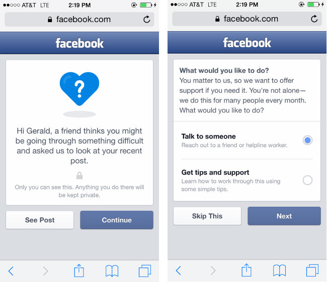 Facebook 2011 yılında intihara meyilli kullanıcıların yaptıkları paylaşımları ihbar edebildiğimiz 'İntihar Niyeti Taşıyan İçeriği Bildirme' sayfasını yayına almıştı. Bu girişimin yeterli olmadığını düşünen sosyal ağ, şimdi de intihara meyilli kullanıcıları bu düşüncesinden vazgeçirmeyi amaçlayan yeni bir özelliği hayata geçirmeye hazırlanıyor.