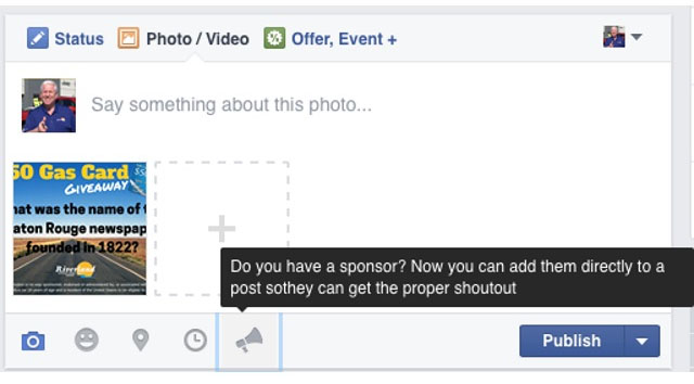 Şuan için sadece belirli kişilerin görebildiği sponsor butonu, Facebook üzerinden bir paylaşım yapılacağı zaman gönderi kısmının hemen altında konum ekle ve fotoğraf ekle gibi butonların yanında yer alıyor. Ne zaman kullanıma sunulacağı hakkında hiçbir bilgi sunulmayan buton bazı kişilerce görülmeye başlandı.