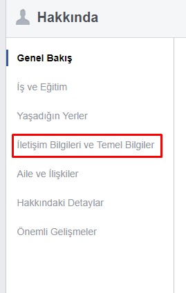 Sol tarafta yer alan menüden iletişim bilgileri ve temel bilgiler sekmesine tıklayın.