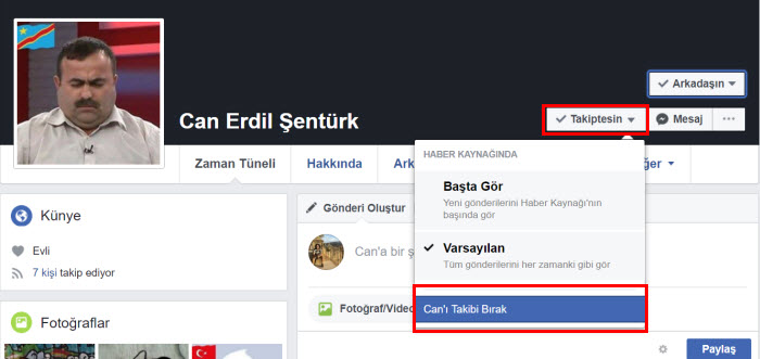 Profil sayfası açıldıktan sonra sağ bölümde “Takiptesin” bölümü yer alıyor. Bu sekmeye tıklayarak bu seçeneği “Takibi Bırak” seçeneği ile değiştirerek devre dışı bırakmanız gerekli.