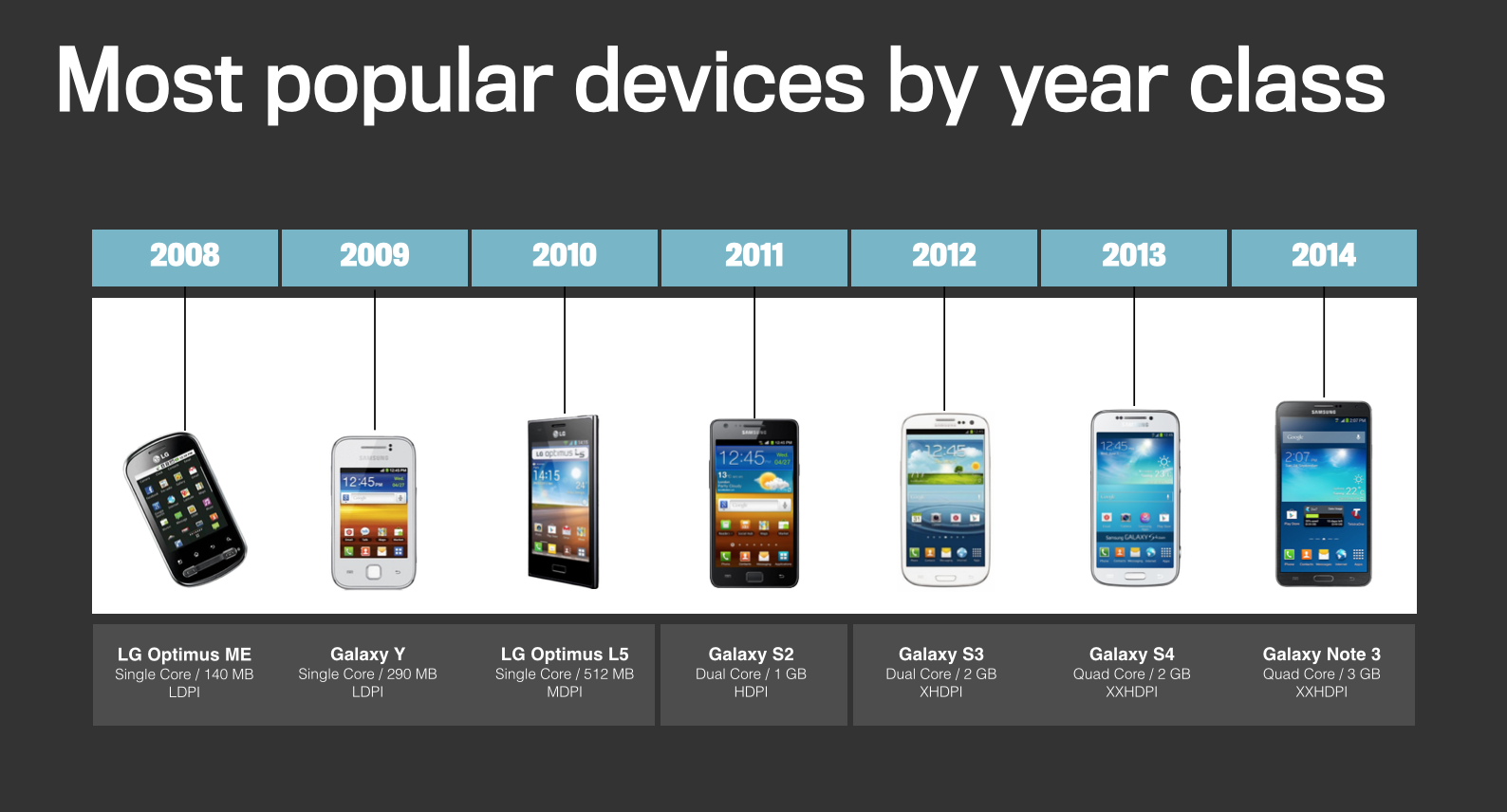 Year Class, geliştiricilerin uygulamalarda hangi tür cihaz kullandıklarını belirleyerek eksiklikleri tamamlamaya yardımcı oluyor. Bu yenilik, örneğin bir uygulama eski sürüm Android cihazlara indirilirken ortaya bazı sorunlar çıktığında geliştiricinin, bu sorunları tespit ederek uygulamasında hemen gerekli güncellemeleri yapabileceği bir ortam sunuyor.