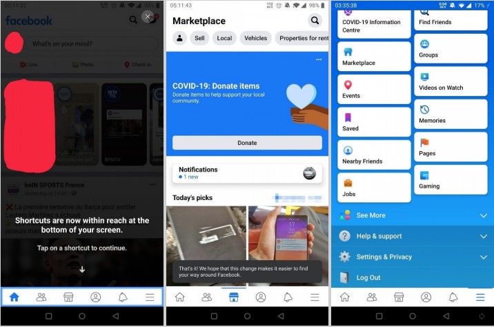 Şuanda Facebook mobil uygulamasında alt sekmelerin uygulamanın en üst bölümüne konumlandırılması pek çok kullanıcı için uygulamayı tek elle kullanmayı oldukça zor bir hale getiriyor. Ancak uygulamanın Android sürümünü kullanan bazı kullanıcılar bu özelliğin bir süre önce eski haline döndüğünü söylüyorlar. Buda Facebook’un yeni özelliği test etmeye başladığı anlamına geliyor. Şimdilik sadece belirli kullanıcıların erişimine sunulan bu özelliğin yakında uygulamanın Android sürümü için yayınlanması bekleniyor.