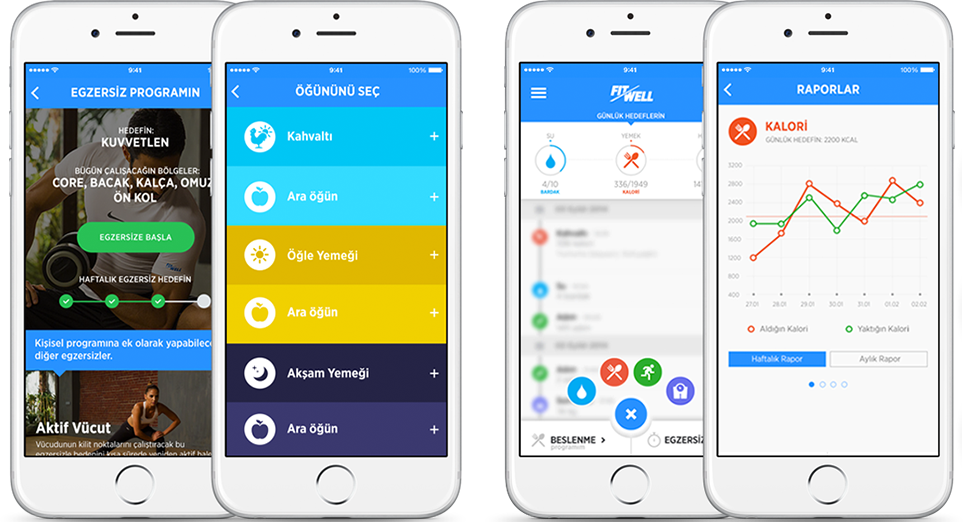 - Fitwell'in raporlama sistemi kullanıcıya günlük, haftalık ve aylık istatistikler sunarak hedefe ne kadar yaklaşıldığını ve performans ile ilgili detayları sunabiliyor.