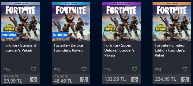 Fortnite, günümüzde oyuncuların en çok tercih ettiği yapımlar arasında yer alıyor ve her geçen gün popülerliği artıyor. Son dönemde, rakibi PUBG?ı da geçerek, Battle Royale türünde en çok tercih edilen oyun olarak adından söz ettiriyor. Oyuna, geliştirici ekip tarafından getirilen güncellemelerin de bunun üzerinde büyük rolü var. Satış rakamlarında ve elde ettiği gelirlerde rekor kıran Fortnite, şimdi de PSN?de indirime girdiğini oyuncularına duyurdu. Verilen bilgilere göre, oyunun Standart Founders PS4 paketi, 31.07.2018 tarihine kadar 59.99 TL?den 29.99 TL'ye düşmüş durumda. %50 indirime giren diğer Fortnite - Deluxe Founder?s PS4 paketinin fiyatı ise 96,99 TL?den 48,49 TL'ye düştü. Genel anlamda satışları oldukça iyi giden Fortnite?ın, bu fiyatların ardından satışlarının daha da yükselmesi bekleniyor.