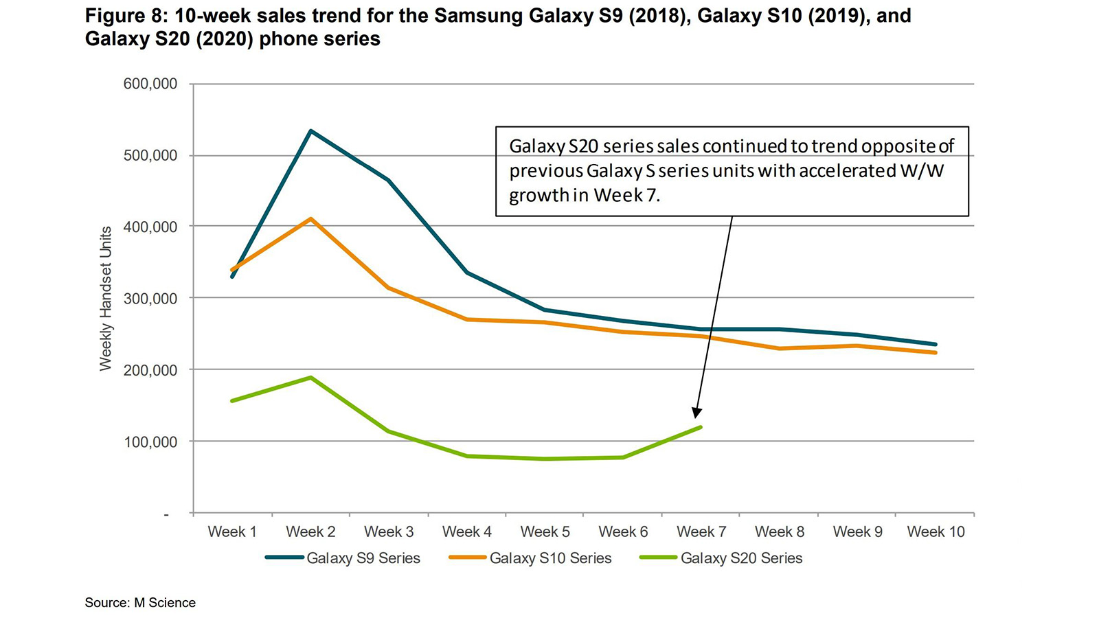 Diğer yandan Samsung’un Galaxy S serinin satış beklentilerinin karşılayamamasının sebebi olarak ise sadece COVID-19 salgını olarak gözükmüyor. Uzmanlara göre ise 5G altyapılarının yeterli düzeyde olmamasının da etkisi bulunuyor. İnsanlar önceki nesli bırakıp yeni bir 5G’li cihaza bu kadar fazla para vermek istemiyor.