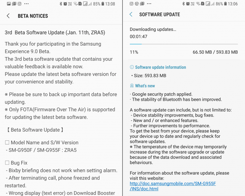 Galaxy S8 Oreo Beta 6 Güncellemesi
