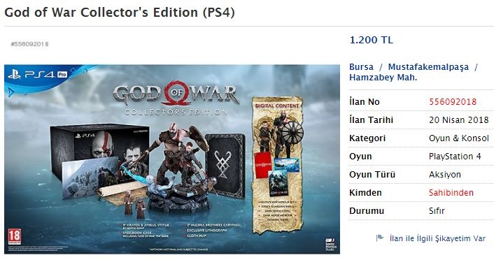 Nisan ayına damgasını vuran oyunlardan bir tanesi ve hatta tek gösterilebilecek olan God of War, dünya genelinde oldukça ilgi gören bir yapım oldu. Oyun severler, God of War henüz çıkmadan da oyuna duydukları ilgiyi göstermişlerdi. PS 4 platformuna özel olarak çıkışını gerçekleştiren God of War'un ana oyununun yanı sıra, ek paketleri de yayınlandı. Bu ek paketlerden bir tanesi de God of War koleksiyoncu sürümü. Bu sürümü satın alan oyuncular, ana oyunun yanında Özel Litograf, Kumaş Harita, Dark Horse Sanat Kitabı, 9 Kratos & Atreus Figür, Steelbook Kapak, Oyun Diski, 2 'Huldra Kardeşler' oymaları, Death's Vow Zırh Seti, Exile's Guardian Kalkan, Dark Horse Çizgi Roman ve Dinamik Tema (PS4)'ya sahip oluyor.