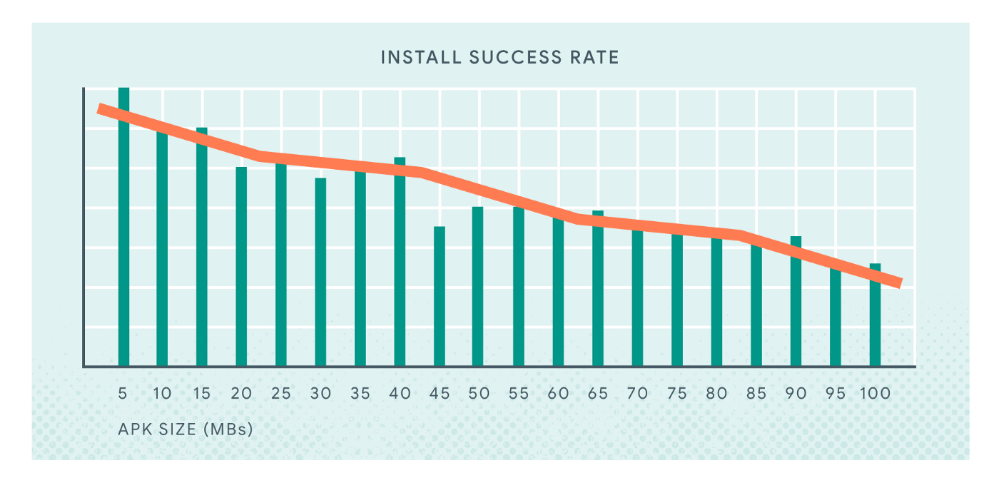 Google tarafından yayınlanan resmi blog yazısında büyük boyutlara sahip uygulama ve oyunların düşük başarılı yükleme oranlarına sahip olduğu belirtildi. Konu ile ilgili yayınlanan özel bir grafikte ise oranlar şöyle;