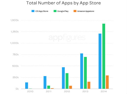 Ünlü araştırma şirketi App Annie, 2014 yılının mobil uygulama verilerini içeren bir rapor yayınladı. Raporla birlikte Google Play Store'daki mobil uygulama sayısının App Store'da yayınlanan uygulamalardan daha fazla olduğu ortaya çıktı.