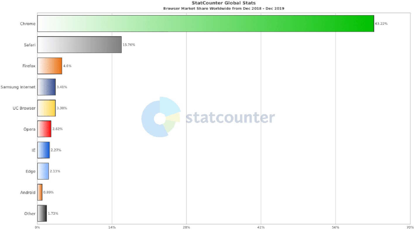 Statcounter tarafından yapılan araştırmalar sonucunda elde edilen bilgilere göre kullanıcıların büyük çoğunluğunun Google Chrome tarayıcısını tercih ettiklerini ortaya koyuldu. Teknoloji devi Google'ın tarayıcısı global pazarın %69.89'luk kısmını elinde bulunduruyor. Chrome'u %9.53 ile Mozilla Firefox takip ediyor. Bunun ardından ise %6.96'lık kullanım oranı ile beraber Apple'ın Safari tarayıcısı geliyor. Listenin ilk beş sırasında ise %4.77 ve %4.52 paya sahip Microsoft Internet Explorer ve Edge tarayıcıları da bulunuyor.