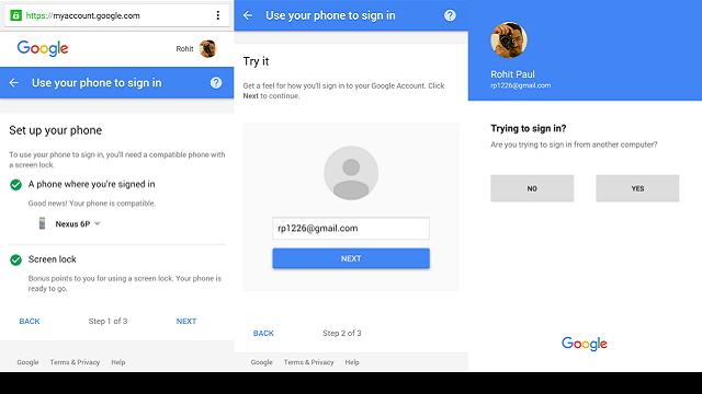 Son derece basit ve güvenli olan bu sistem için kullanıcı PIN, parola veya parmak izi ile korunan mobil cihazı sisteme onaylatması yeterli. Eğer kullanıcı web üzerinden bir Google hesabına giriş yapmak isterse giriş yapma talebi mobil cihazına sms ile bildirilecek.
