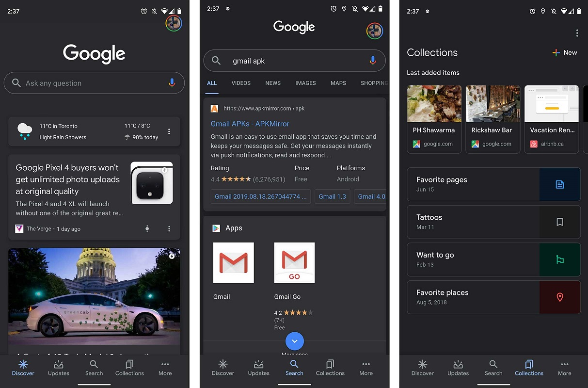 iOS ve Android işletim sistemi için özel olarak sunulan Google arama uygulamasına kullanıcıları sevindirecek bir yenilik geliyor. Uygulamaya uzun süredir beklenen bir tasarım güncellemesi geldi. İnternet dünyasının dev ismi Google, çok geç kalmasına rağmen iOS ve Android için kullanımda olan ana arama uygulamasına "dark mode - koyu tema - siyah arayüz modu" getirildiği duyuruldu. Android 10, iOS 12 ve iOS 13 cihazlarda çalışan karanlık mod özelliği, sonunda gelmiş olmasıyla elbette kullanıcıları sevindiren bir özellik oluyor. Kişiler günümüzde arama işlemlerinin büyük çoğunluğunu halen internet tarayıcıları üzerinden yapıyor. Ancak bu Google’ın uygulamasını kullanan kişilerin de sayısı gün geçtikçe artmaya devam ediyor. Google Lens yerleşik olması ve kişilere hızlı haberler sunmasıyla beğenilen ana arama uygulama, artık siyah arayüzü ile gece kullanımını da hiç olmadığı kadar kolay hale getiriyor. Karanlık mod özelliği bildiğiniz üzere birçok uygulama kullanımda olup kullanıcılar tarafından beğenilerek kullanılıyor.