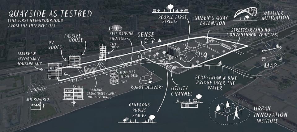 Sidewalk Labs web sitesi üzerinden elde edilen belgeler yepyeni bir projeye ışık tutuyor. Toronto'da akıllı bir mahalleye yönelik vizyonu açıklayan 200 sayfalık bir belge olarak karşımıza çıkıyor. İçinde çimenlik parklar, modüler binalar ve dağıtım robotları bulunan yeraltı tünelleri ve içinde internet kablosu bulunan sıcak, cennet gibi bir topluluk gösteren resimlerle dolu. Metin, arabalardan arınmış ve karbon ayak izini azaltmaya kendini adamış "gerçekten eksiksiz bir topluluk" profilini tanımlıyor. Her şeyin temelinde, kentin tasarımını anlamak ve geliştirmek için gerekli olan verileri toplamak için gürültü, trafik ve kirliliği izleyebilen bir algılayıcı ağı yer alıyor.