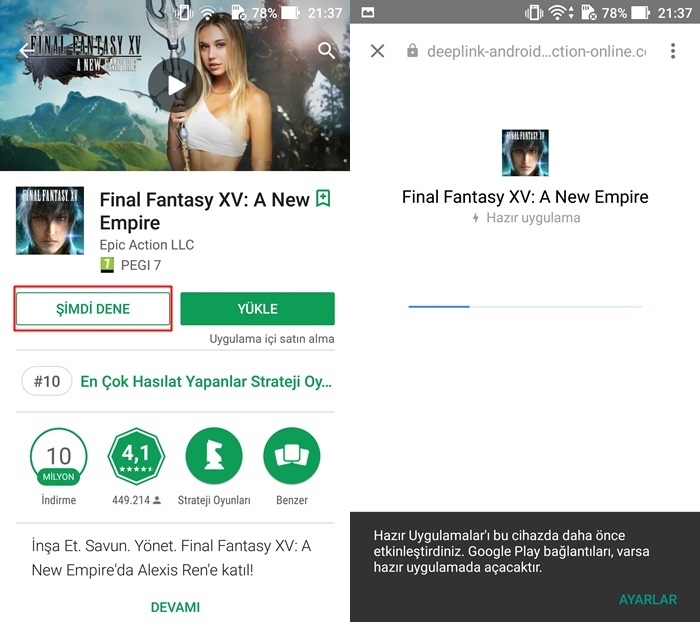 Oyunları yüklemeden önce Google'ın yeni getirdiği değişiklik sayesinde yüklemeden önce deneyebilirsiniz bu sayede sahte olup olmadığını kolayca anlayabilirsiniz.