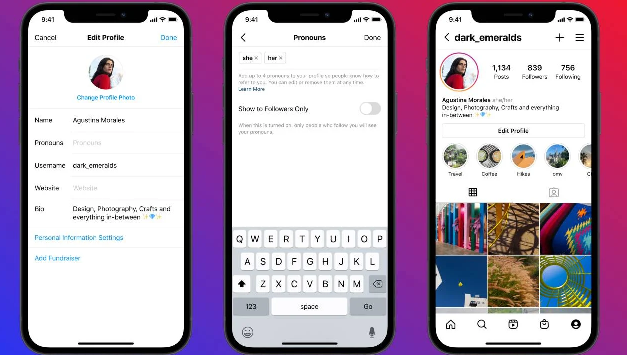 Instagram bu yeni özelliği Zamirler olarak adlandırıyor ve kullanıcıların kendilerini tarif eden zamirler eklemesine imkan tanıyacak. Instagram bu bölüme herhangi bir kelime eklenmesini yasaklarken, şuan için belli zamirlere izin veriliyor.