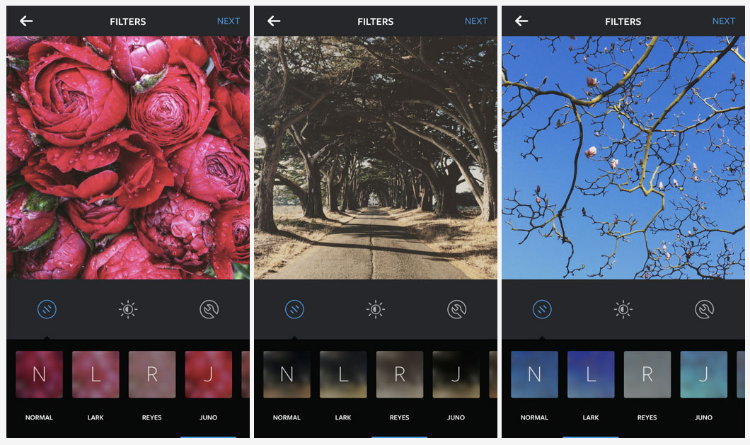 Güncellemede; mavi ve yeşili hakim olduğu Lark, nostalji bir hava katan Reyes ve kişileri öne çıkararak sıcak renk tonlaması veren Juno adında 3 yeni filtre özelliği ile beraberinde emoji destekli hashtag sistemi Instagram'a ekleniyor.