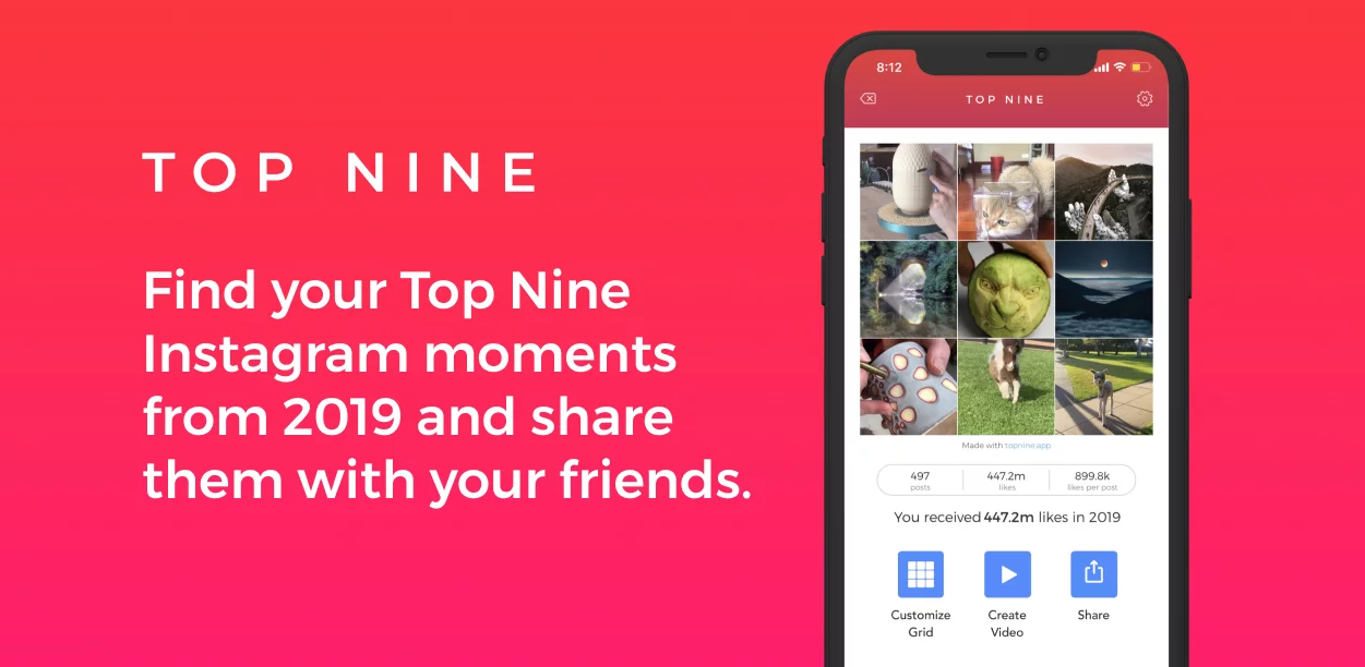 Instagram yasakları çoğalıyor!Yeni bir uygulama olan Top Nine ile 2019 yılında en fazla beğeni almış fotoğraflarınız otomatik olarak size gösteriliyor. Bu önemli 9 fotoğrafı isterseniz kolaj olarak size sunuyor ve bunu paylaşabiliyorsunuz. Top Nine adlı uygulamayı App Store veya Google Play Store’dan telefonunuza indirmeniz gerekiyor. Daha sonra uygulama giriş yaptıktan sonra kullanıcı adınızı panele yazmanız gerekiyor. Daha sonra e-posta bilginizi girdikten sonra yıl içinde en fazla beğeni almış 9 fotoğrafınızı içeren bir kolaj oluşturulacak ve kolaj oluşturulduktan sonraki fotoğrafı telefonunuza indirebilir veya direkt bir şekilde paylaşabilirsiniz.