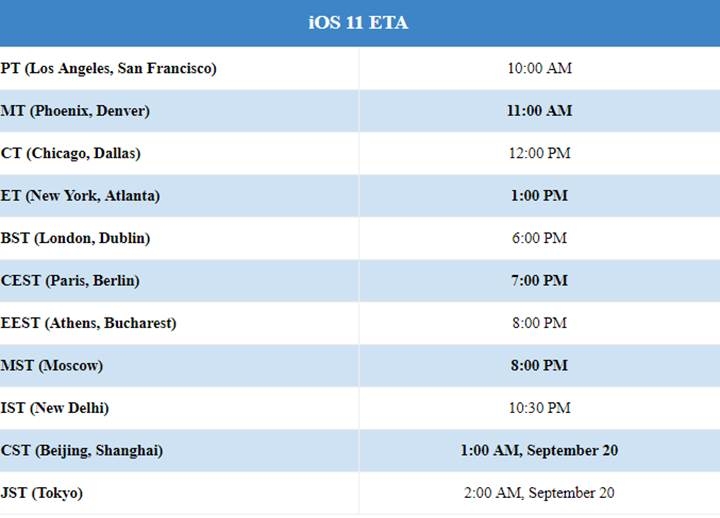 Apple'ın yaptığı diğer bir açıklamaya göre güncelleme saat 20:00'den sonra indirilebilir hale gelecek ve kullanıcılara açılacak. Apple, 5 Haziran 2017'de düzenlemiş olduğu WWDC 2017 etkinliğinde iOS 11'i dünyaya tanıtmıştı. Yaklaşık 3 aydır test aşamasında olan iOS 11'in bugüne kadar tam 10 tane Beta sürümü yayınlandı. Yapılan etkinlikle beraber, tarih kesinleşmiş, çıkacağı tarih 19 Eylül olarak duyurulmuştu.