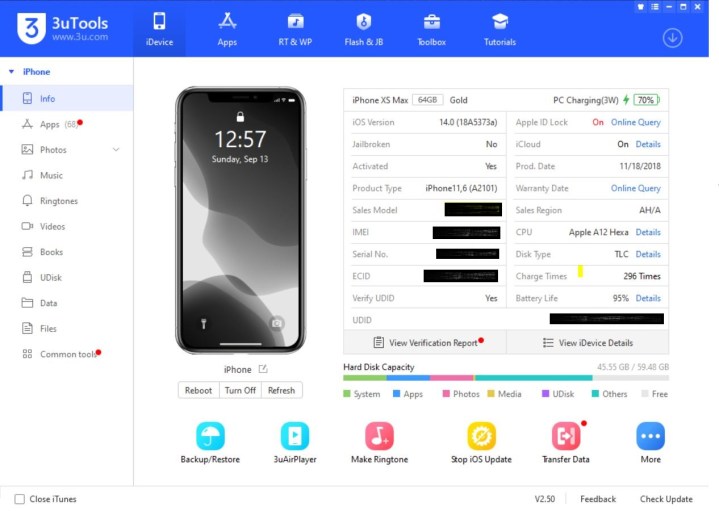 Sadece Windows işletim sisteminde çalışan uygulama arayanlar ise 3uTools’u tercih edebilir. Uygulamayı kullanmak için öncelikle iPad'in bilgisayar ile bağlanması ve ardından gerekli olan izinlerin verilmesi gerekmektedir. Ardından uygulama iPad üzerinden aldığı bilgileri kullanıcılar ile paylaşmaya başlar. Sıcaklık, kapasite, gerçek kapasite, şarj süreleri ve şarj oranı gibi tüm detaylar yine uygulama tarafından sorunsuz bir şekilde aktarılmaktadır.