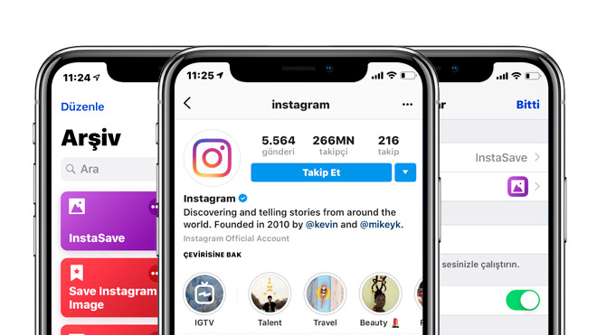 Instagram Müşteri HizmetleriiOS 12’in kestirmeler özelliği sayesinde Siri’ye çeşitli komutlar vererek ortaya oldukça işlevsel kısayollar çıkartabilirsiniz. InstaSave adlı bir kestirme ile Instagram’dan hem video hem de fotoğraf kaydetmek oldukça basit bir hal alacak. App Store üzerinden Kestirmeler uygulamasını indirerek uygulama ile çeşitli kısayollar hazırlayabilirsiniz. Kestirmeler uygulaması sayesinde Siri’ye basit şekilde komutlar vererek normal işlemlerden çok daha ötesini iPhone cihazınıza yaptırmak mümkün olacaktır. Ayrıca kestirmelerde kendi kısayollarınızı oluşturabilecek gibi internetten hazır olarak kestirmeler indirerek cihazınıza işleyebilirsiniz.