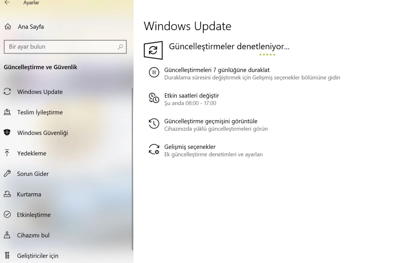 - Buradan güncelleştirme ve güvenlik sayfasına erişin.