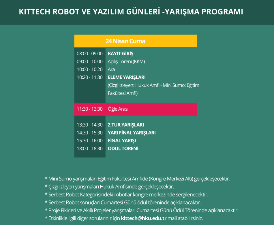 KITTECH Robot ve Yazılım Günleri & Hasat Proje Pazarı etkinliği hakkında daha fazla bilgi için kittech.hku.edu.tr sayfasını ziyaret edebilirsiniz.