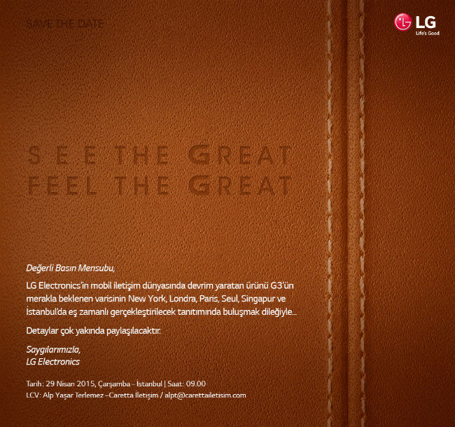 Son olarak LG Türkiye, LG G4 lansmanını 29 Nisan 2015, Çarşamba günü saat 09:00'da yapacak.