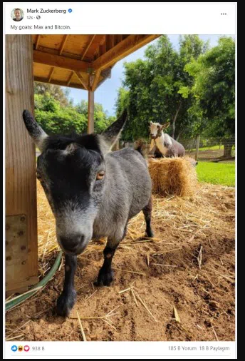 Facebook CEO’su Mark Zuckerberg, Bitcoin içeren bir paylaşım yaptı. Beslediği keçilerden birisine Bitcoin, diğerine ise Max adını veren Zuckerberg, yaptığı paylaşımla dikkatleri çekti. Yaşanan bu gelişme kripto para pazarının da ilgisini çekerken, akıllara Zuckerberg’in yada Facebook’un Bitcoin yatırımı yapıp yapmadığı konusu geldi. Öyle ki bazılarına göre bu paylaşımın Mark’ın ileriye dönük planlarından bir ipucu olabileceğine dair düşüncelere girdi. Konu hakkında SkyBridge kurucusu Anthony Scaramucci ise Zuckerberg’i Bitcoin topluluğuna çağırdı.