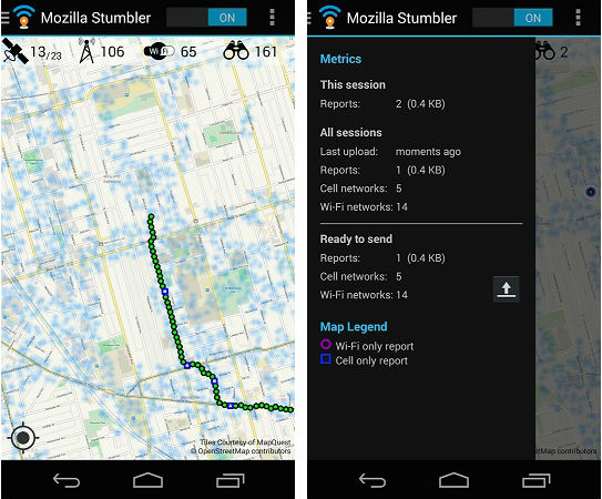 Mozilla, Konum Hizmeti için veri toplama işini Android cihazlarda kullanılabilen Mozilla Stumbler uygulamasına bıraktı. Ücretsiz olarak indirilebilen uygulama arka planda kablosuz ağ ve cep telefonu baz istasyonu taraması yaparak konum hizmetine bilgi topluyor. Sonrasında ise tüm kullanıcılardan gelen veriler dünya haritası üzerine yansıtılarak hangi noktalardan veri toplandığı bilgisine ulaşılmasını sağlıyor.