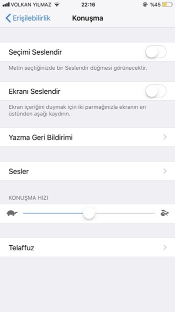 iPhone'da ek olarak hiçbir uygulama yüklemeden metni konuşmaya çeviren bir özellik yer alıyor. Bu özelliği etkinleştirmek için Ayarlar > Genel > Erişilebilirlik >Konuşma. Bu adımları takip ettikten sonra, 2 seçenek çıkacaktır; Seçimi Seslendir ve Ekranı Seslendir. Seçimi Seslendir özelliğini kullanmak, daha kullanışlı bir hale getirecektir. Özellikle uzun araba yolculuklarında iş görecek bir özellik.