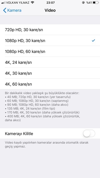 iPhone cihazlarında yer alan yeni nesil kameralar oldukça güzel çekimlere el veriyor, fakat bu videolar çok büyük alanları kaplıyor. 1 dakikalık bir videoyu 720p çözünürlükte 30fps olarak kaydettiğinizde yalnızca 40 MB yer kaplayacaktır. Ancak, aynı uzunluktaki bir videoyu 4K çözünürlükte ve 60fps olarak kaydettiğinizde 400 MB'lık bir alan kaplayacaktır. Kalıcı olarak değil de anlık olarak çekip yollamak istiyorsanız Ayarlar > Kamera > Video adımlarını izleyerek çözünürlük ayarlarını değiştirebilirsiniz.