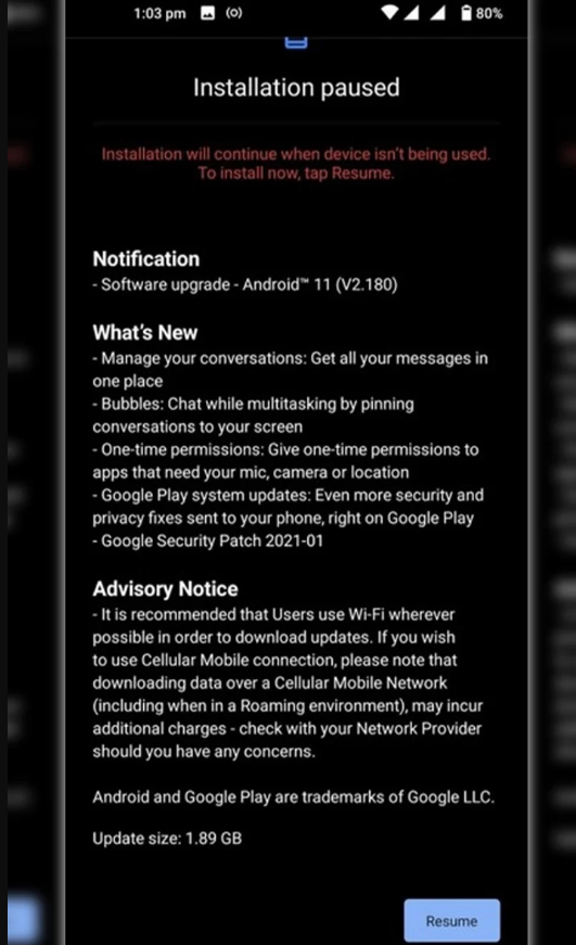 Nokia TA-1322 tasarım ve bazı özellikleri FFC listesinde ortaya çıktıGSMArena’da paylaşılan bir güncelleme ekran görüntüsünde güncelleme boyutunun 1.89 GB olduğu gözüküyor. Ek olarak Ocak 2021 güvenlik güncellemesi de bu yazılım güncellemesi ile beraber kullanıcılara geliyor. Yeni güncelleme ile beraber ekran görüntüsüne göre sohbetleri ekrana sabitlemeyi yarayan sohbet baloncukları özelliği kazanıyor. Ayrıca mesaj bildirimlerini gruplandırma, cihaza erişim isteyen uygulamalara tek seferlik izin verme ile güvenlik güncellemelerini direkt olarak Google Play Store’dan indirme özellikleri geliyor.